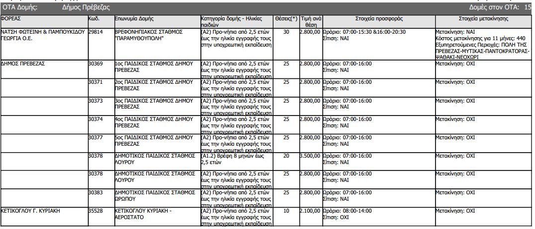 611 παιδιά επιδοντούνται, σύμφωνα με τους προσωρινούς πίνακες της Δράσης "Εναρμόνιση Οικογενειακής και Επαγγελματικής ζωής", στους παιδικούς σταθμούς της Π.Ε. Πρέβεζας.