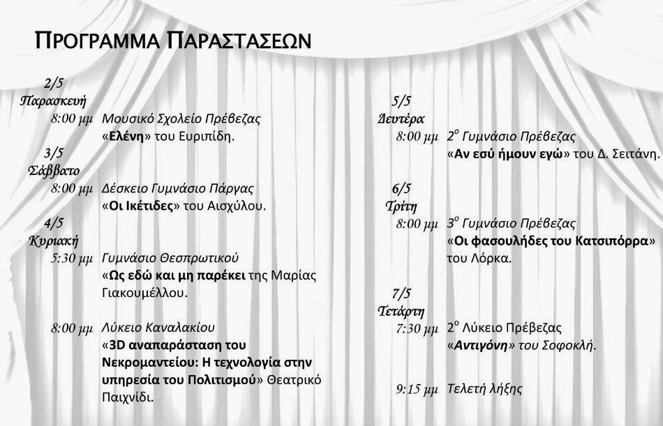 Πρέβεζα: 2ο Μαθητικό Φεστιβάλ Θεάτρου 2-7 Μαΐου