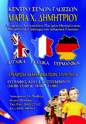 Το φιλικό περιβάλλον, το εξειδικευμένο προσωπικό – οι καθηγητές επιλέγονται με τ'αυστηρότερα κριτήρια σύμφωνα με τις γνώσεις τους και την προσωπικότητά τους και όλα αυτά βέβαια υπό την επίβλεψη της υπεύθυνου κ. Δημητρίου – η συνεχής αξιολόγηση, τα ολιγομελή τμήματα, η εξατομικευμένη προετοιμασία, η χρήση υπολογιστών ως μέσου εκμάθησης και εξάσκησης της γλώσσας, η προβολή DVD αλλά και η τακτική επικοινωνία με τους γονείς, αποτελούν εγγύηση για σίγουρα αποτελέσματα.