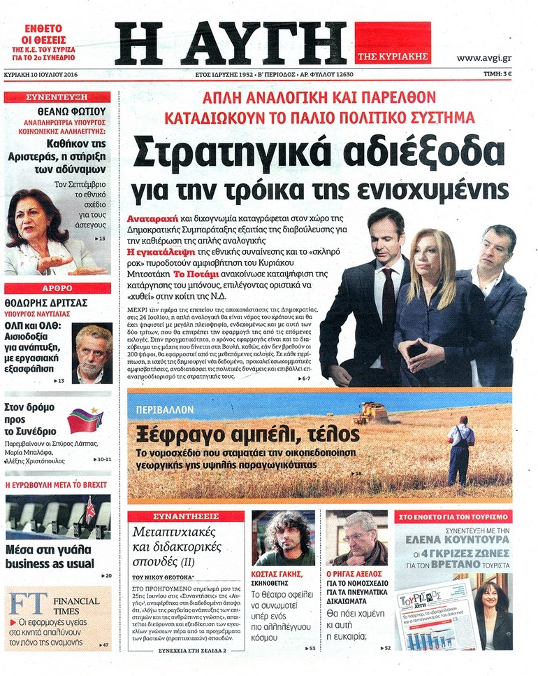 Τα πρωτοσέλιδα της Κυριακής 10-7-2016