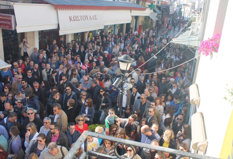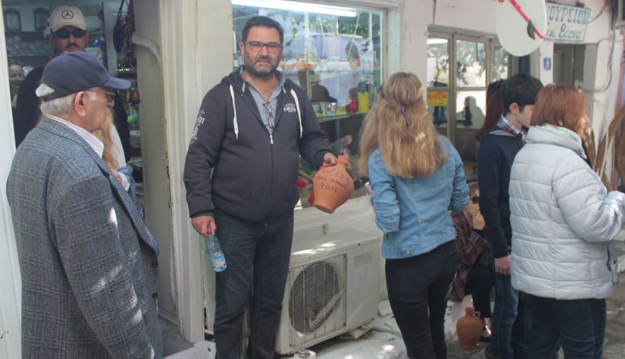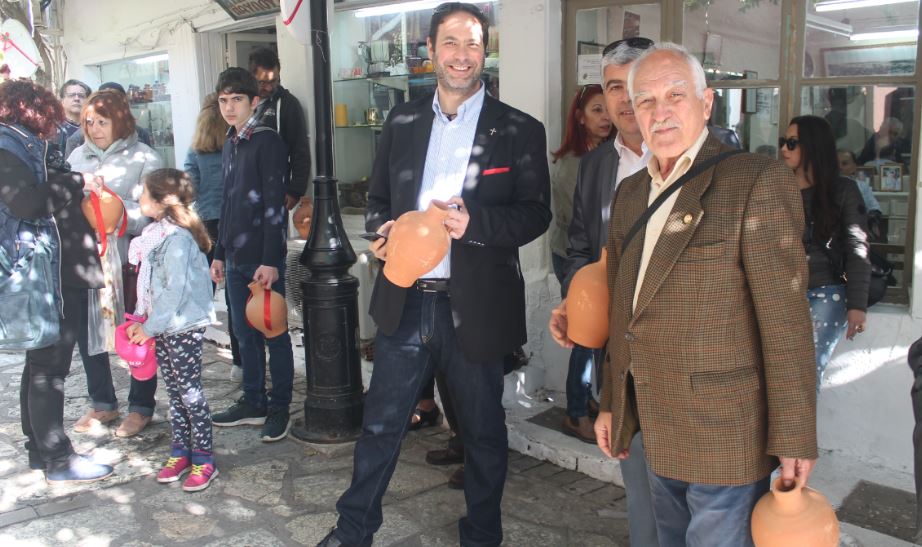 Δεκάδες πήλινα αντικείμενα έσπασαν στο πλακόστρωτο ενώ οι κροτίδες που έπεφταν έστέλναν σε όλη την πόλη το χαρμόσυνο Αναστάσιμο μήνυμα.